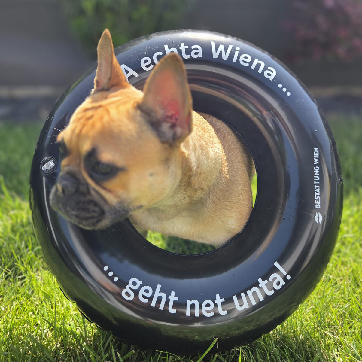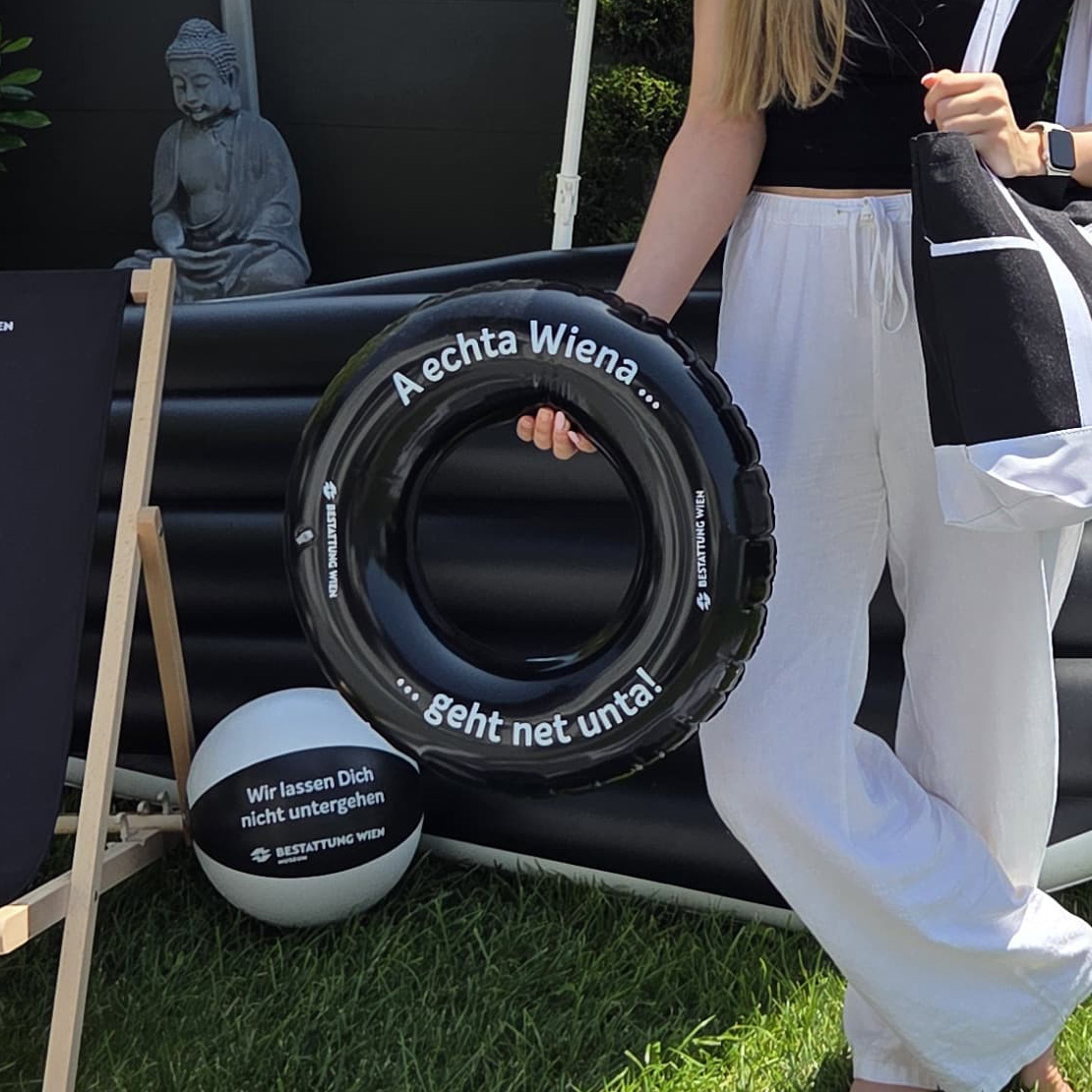 Ob im Bad oder Planschbecken – mit diesem Schwimmpolster bleibst du garantiert oben! Und zwar mit Stil und Wiener Schmäh.